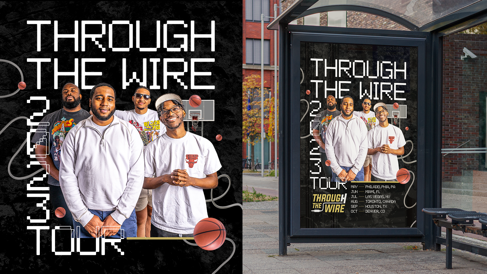 Through the Wire was a podcast that covered all things NBA, including the players, teams, and the league. The podcast was hosted by Pierre Andresen, Mike Heard, Darrick Miller, and Kenny Beecham. As a hybrid designer for Warner Bros Discovery Sports, I had the opportunity to brand their tour, including posters, merchandise, landing page, email marketing, set design and more.